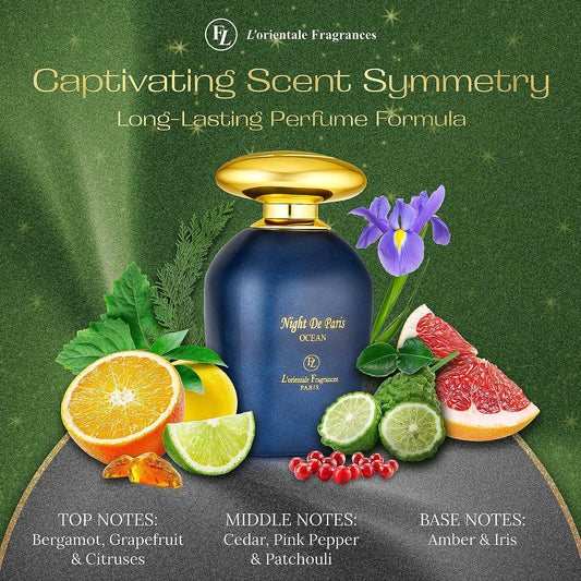 L'ORIENTALE FRAGRANCES Night De Paris Ocean 100ml / 3.3oz - Oil-Based Perfumes for Women & Men, Unisex Aromatic Aquatic Eau de Parfum w/Bergamot - Long-Lasting Up to 24 Hours, Ideal for All Seasons